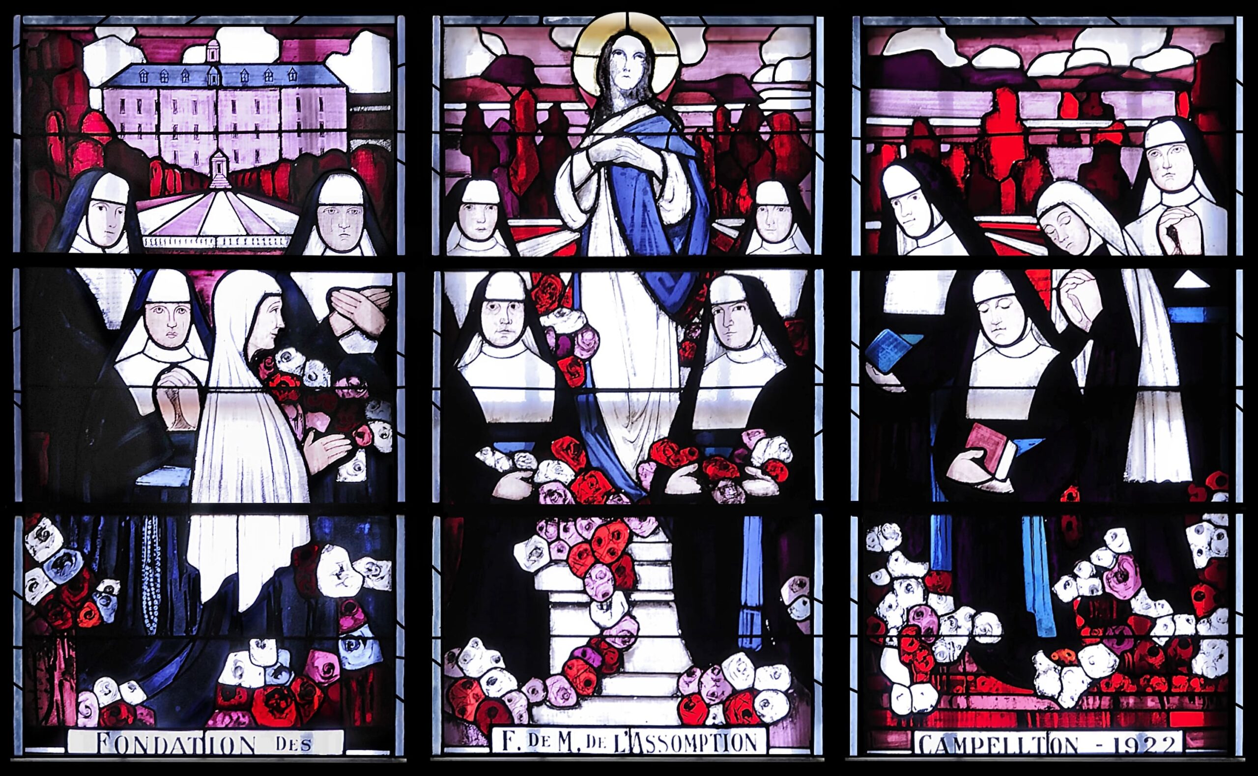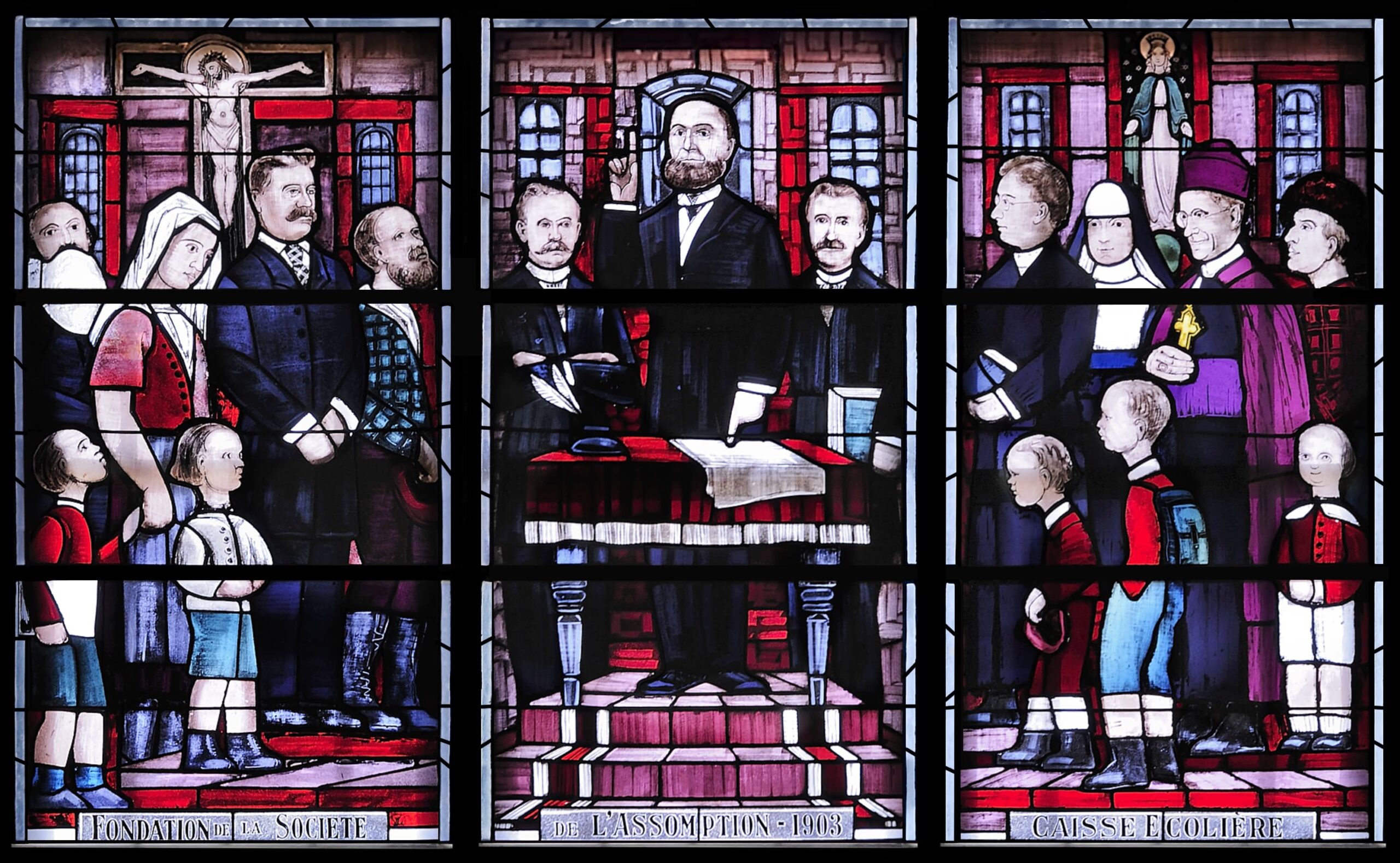 La Cathédrale Notre-Dame-de-l’Assomption, imposant témoignage du patrimoine acadien, a été désignée « Monument de la Reconnaissance acadienne » par son tout premier archevêque, Mgr L.-J.-Arthur Melanson. De plus d’une façon, les grandes verrières qui dominent le paysage du transept comptent parmi les œuvres exemplifiant le mieux le caractère de cette reconnaissance. Immortalisés dans le verre, on retrouve la survivance du peuple acadien et la fervente piété qu’il voue à Marie, patronne et protectrice de l’Acadie.