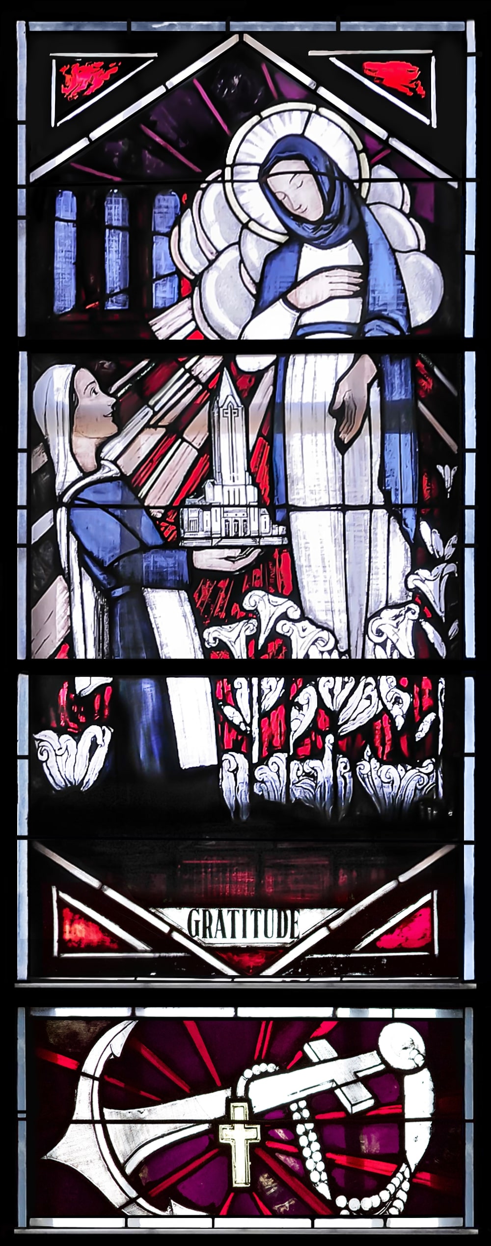 Finalement, le 8 octobre 1941, Labouret et Audet obtiennent l’approbation de l’archevêque et procèdent ainsi à l’installation des verrières dans le transept de la Cathédrale. Mgr L.-J.-Arthur Melanson meurt le 23 octobre, sa supervision des grandes verrières historiées ayant été sa dernière contribution matérielle, et sans doute la plus représentative, du Monument de la reconnaissance qu’il a lui-même baptisé.